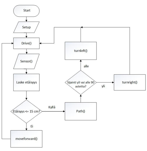 Tavoite projektissa oli kehittää ja valmistaa itsestään liikkuva, esteet tunnistava ja niiden mukaan suuntaa vaihtava auto.Sen ohjaukseen käytettiin ultraäänisensoria ja Arduino Pro Miniä. Voimansiirrossa toimi kaksi pienoismoottoria sekä sensorin liikuttamisessa servomoottori.